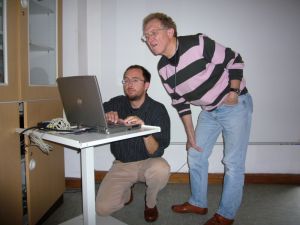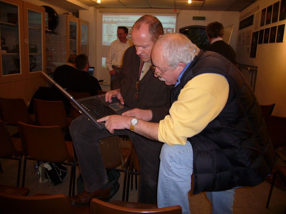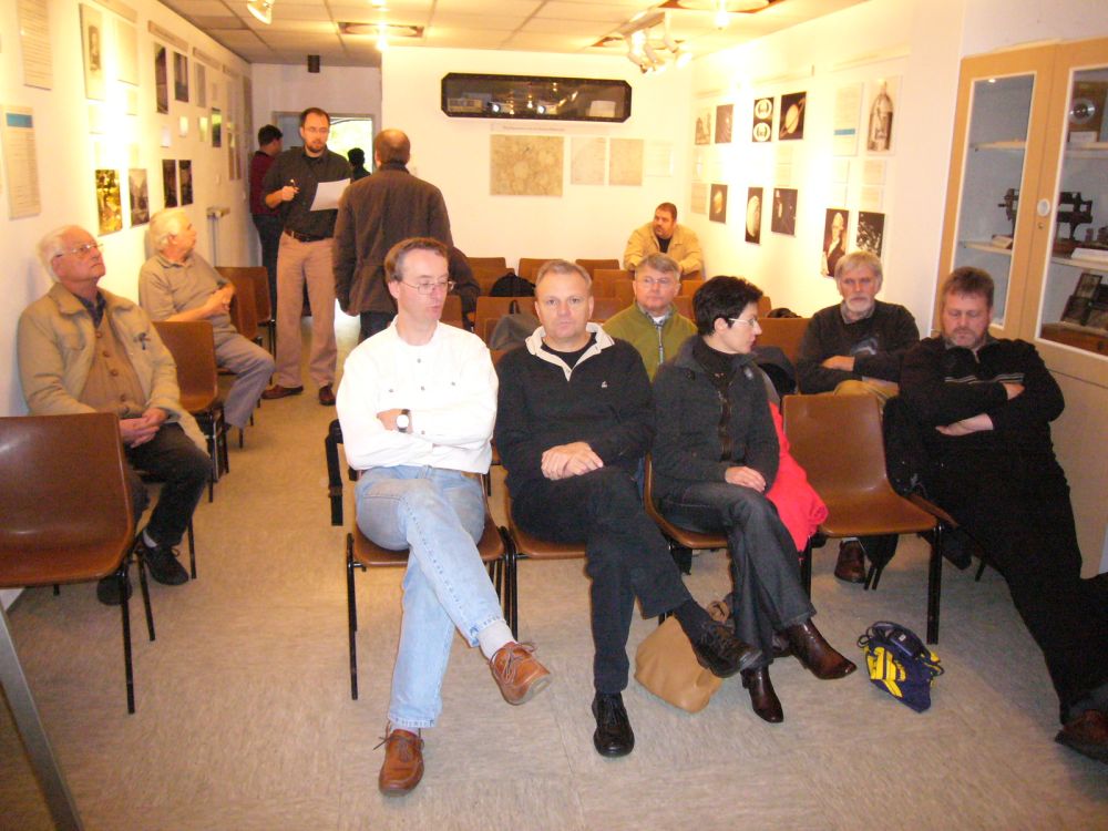 Sie befinden sich hier: Treffen > Hannover 2007 Am 27. Oktober 2007 in HannoverIch konnte selber zum Treffen in Hannover leider nicht kommen. Es gibt bisher nur einen bebilderten Bericht und das übliche Gruppenfoto. Weitere Berichte und Bilder sind willkommen! Weiß jemand, wo das nächste NAFT stattfindet? Am 27. Oktober 2007 wurde das NAFT in der Volkssternwarte Geschwister Herschel in Hannover von Mathias Levens und Kai Simon abgehalten. Das übliche Gruppenbild, wieder von Uwe Freitag: Ein Tagungsbericht von Manfred Holl: An diesem Samstag fand in Hannover, organisiert von den Mitgliedern der Volkssternwarte Geschwister-Herschel e.V., in der niedersächsischen Landeshauptstadt das Norddeutsche Astrofotografentreffen für den Herbst 2007 statt. Wer da meinte, wegen des nicht gerade berauschenden Wetters im vergangenen Sommer würden nur wenige Astrobilder gezeigt werden, der irrte gewaltig und versäumte allerhand. Ich fuhr an diesem Tage bereits kurz nach 9 Uhr in Richtung Fintel los, von wo aus ich zusammen mit Christian Harder weiterfahren wollte. Allerdings gestaltete sich das zunächst etwas schwierig, denn dichter Straßenverkehr, Baustellen, Staus auf der A 1 und zunehmend dichter werdender Nebel verhinderten erfolgreich ein schnelles vorankommen, sodass ich erst gegen 10:40 Uhr in dem kleinen Heidedorf ankam. In der Hoffnung auf eine Beobachtung des Kometen 17P/Holmes, der wenige Tage zuvor einen exorbitanten Helligkeitsausbruch erlebt hatte und zwischen 12 und 13 (!) Größenklassen heller geworden war, hatte Christian seinen selbstgebauten 8"–Dobson bereits ins Auto gepackt und auch einen Großfeldstecher dazugelegt. Ich war angesichts der Wettermodelle von Meteoblue und GFS weit weniger optimistisch, denn die sagten entweder gar keinen klaren Himmel und jede Menge Wolken voraus, die von einem Wirbel mit Kern über Polen stammten, oder gingen von einem Aufklaren erst am Sonntagmorgen aus. Davon unbeeindruckt fuhren wir los, durchquerten viele Nebelbänke und gelangten schließlich zur Autobahn A 7, über die wir rasch voran und schließlich in Hannover schon gegen 12:30 Uhr ankamen. Nur noch die letzten Stufen bis zur Sternwarte genommen (die in einem Gebäude liegt, das einer mittelalterlichen Trutzburg nicht unähnlich sieht) und das NAFT konnte in entspannter Runde beginnen. Für Verpflegung war ausreichend gesorgt und so konnten wir uns erst mal mit Kaffee und belegten Brötchen stärken, bevor wir die aus zwei Kuppeln bestehende Sternwarte der Hannoveraner Sternfreunde besichtigen, die u.a. einem 8"-Refraktor enthalten. Kurz nach 14 Uhr – aus Hamburg war außer mir nur noch Bruno Mattern angereist – begann der offizielle Teil des Norddeutschen Astrofotografentreffens (an dem man auch teilnehmen kann, wenn man sich selbst nicht unbedingt als Astrofotografen sieht). Christian Harder zeigte Bilder der ISS, von aktuellen Ereignissen wie die Konjunktion Jupiters mit Vesta, der Regulus–Bedeckung (die aber von der Heide aus nur als enger Vorübergang sichtbar war), einige Deep–Sky–Motive und Kometen wie z.B. Loneos. Bruno Mattern stellte danach seine zusammen mit Eric–Sven Vesting in der Heide betriebene Privatsternwarte vor und präsentierte Aufnahmen, die er von dem Standort aus mit der Canon EOS 20Da aufgenommen hatte: M 42, M 51, M 63, M 104 und weitere Objekte erfreuten das Auge des Betrachters. Danach war eine kleine Pause notwendig, weil der Sauerstoffgehalt in dem kleinen Vortragsraum, in dem mittlerweile rund 40 Sternfreunde Platz genommen hatten, schon in kritische Margen abgesunken war. Daher folgten nach jeweils zwei Referaten immer eine kurze Pause. Nach dem Einsaugen frischer Luft begann der zweite Vortragsblock: Michael Theusner präsentierte Atem beraubende, hoch aufgelöste und nur selten in dieser Qualität gesehene Mondaufnahmen mit der DMK–Firewire–Kamera, die alle in Erstaunen versetzten. Hasselblad und APOLLO waren gestern, DMK ist heute! Zudem berichtete er über Helligkeitsmessungen an HD 189733, einem Stern nahe M 27 mit einem Exoplaneten. Dessen Transit konnte er am eigenen 6 cm -Takahashi-Refraktor aufzeichnen: Eine beachtliche Leistung für einen Amateur, dem aber auch entsprechendes Instrumentarium zur Verfügung stand. Einige Deep–Sky–Fotos rundeten das positive Gesamtbild ab. „Querbeet" lautete der nachfolgende Vortrag von Uwe Freitag, der es mal wieder in sich hatte: Aufnahmen von Leuchtenden Nachtwolken und seiner Reise zum ITV 2007 bildeten dabei den Schwerpunkt. Im Anschluss an die nächste Pause ging es weiter mit Polarlichtaufnahmen von Michael Hunnekuhl, der dieses interessante, durch den Sonnenwind hervorgerufene Phänomen während einer Nordlandfahrt fotografieren konnte und auch hier fehlte er nicht, der Deep–Sky–Himmel, vertreten durch eine schöne Aufnahmen des Andromedanebels. Zum Thema Sonnenfotografie sprach danach Wolfgang Lille, der hier einige – allerdings zumeist schon ältere Aufnahmen – dabei hatte und die Probleme mit dem Stader Bauamt beim Ausbau seiner Sternwarte vorstellte. Noch eine Pause und noch zwei Vorträge: Harald Simon zeigte – leider etwas zu hektisch und viel zu schnell – die tollen Bilder seiner jüngsten Namibiareise, die nicht nur die Schönheiten des Landes, sondern auch die des Südhimmels vor Augen führten. Danach war Oliver Stiehler mit dem letzten digitalen Vortrag über die „Fotografie der ISS ohne automatische Nachführung" vor, der für viel Diskussionsstoff sorgte. Mittlerweile war die Zeitvorgabe für das Ende der Veranstaltung gegen 18 Uhr längst überschritten, aber noch zwei weitere Vorträge standen auf dem Programm, die eines deutlich machten: Analog ist doch nicht tot, denn Michael Mushardt belegte anhand von 6 x 6 – (und später Kleinbild-)Dias aus Namibia, dass man auch im digitalen Zeitalter immer noch sehr gut auf Film fotografieren kann. Den letzten Vortrag hielt der wohl mit Abstand südlichste Gast, der jemals bei einem NAFT anzutreffen war: Mi